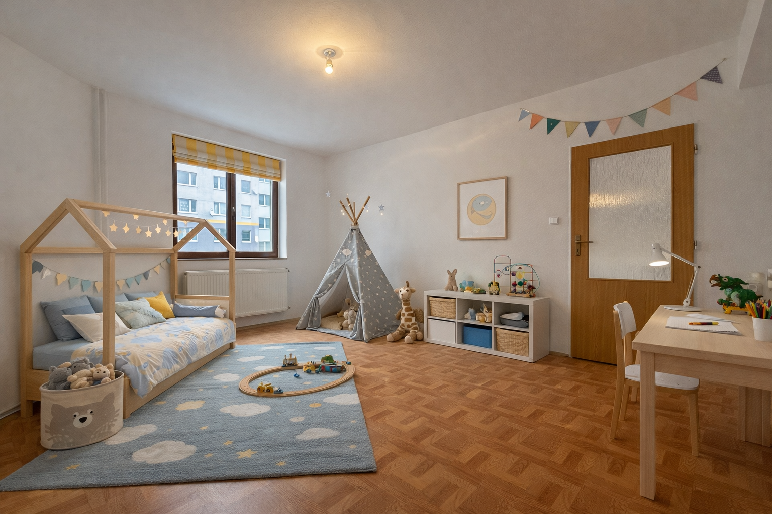 Apartmán ponúka praktické dispozičné riešenie s dostatkom priestoru pre komfortné bývanie. Dennú časť tvorí priestranná obývacia izba prepojená s kuchyňou, ktorá vytvára prirodzené centrum domácnosti. Súčasťou kuchyne je samostatná špajza, ktorá zabezpečuje dostatok úložného priestoru. Nočnú časť bytu tvoria dve samostatné nepriechodné izby. Byt ďalej disponuje kúpeľňou, samostatným WC a vstupnou chodbou s priestorom na úložné riešenia.
